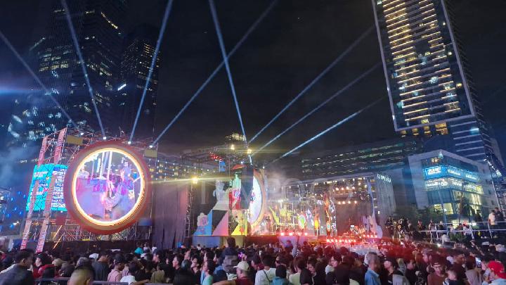 HI Roundabout’taki sahne çevresinde ziyaretçilerin müzik eşliğinde dans ettiği görüldü. Bazıları kutlamaları yağmurluk veya şemsiyeyle izledi. Yeni gelen ziyaretçiler saat 22.00 WIB civarına kadar hala görülebiliyordu.