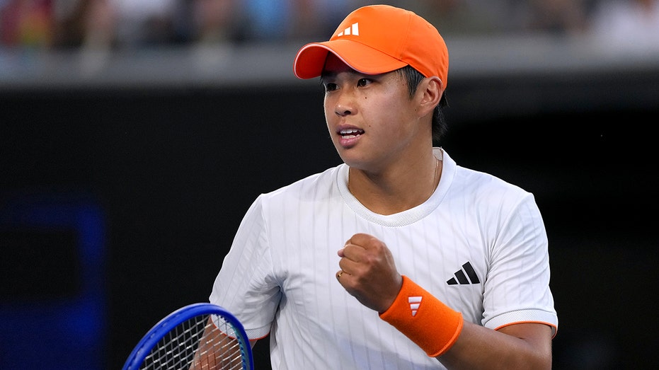 Öğrenci Tien, 19 Ocak 2026’da Melbourne’deki Avustralya Açık’ta ilk tur maçında Marcos Giron’u mağlup ettikten sonra tepki gösteriyor. (AP Fotoğrafı/Asanka Brendon Ratnayake)